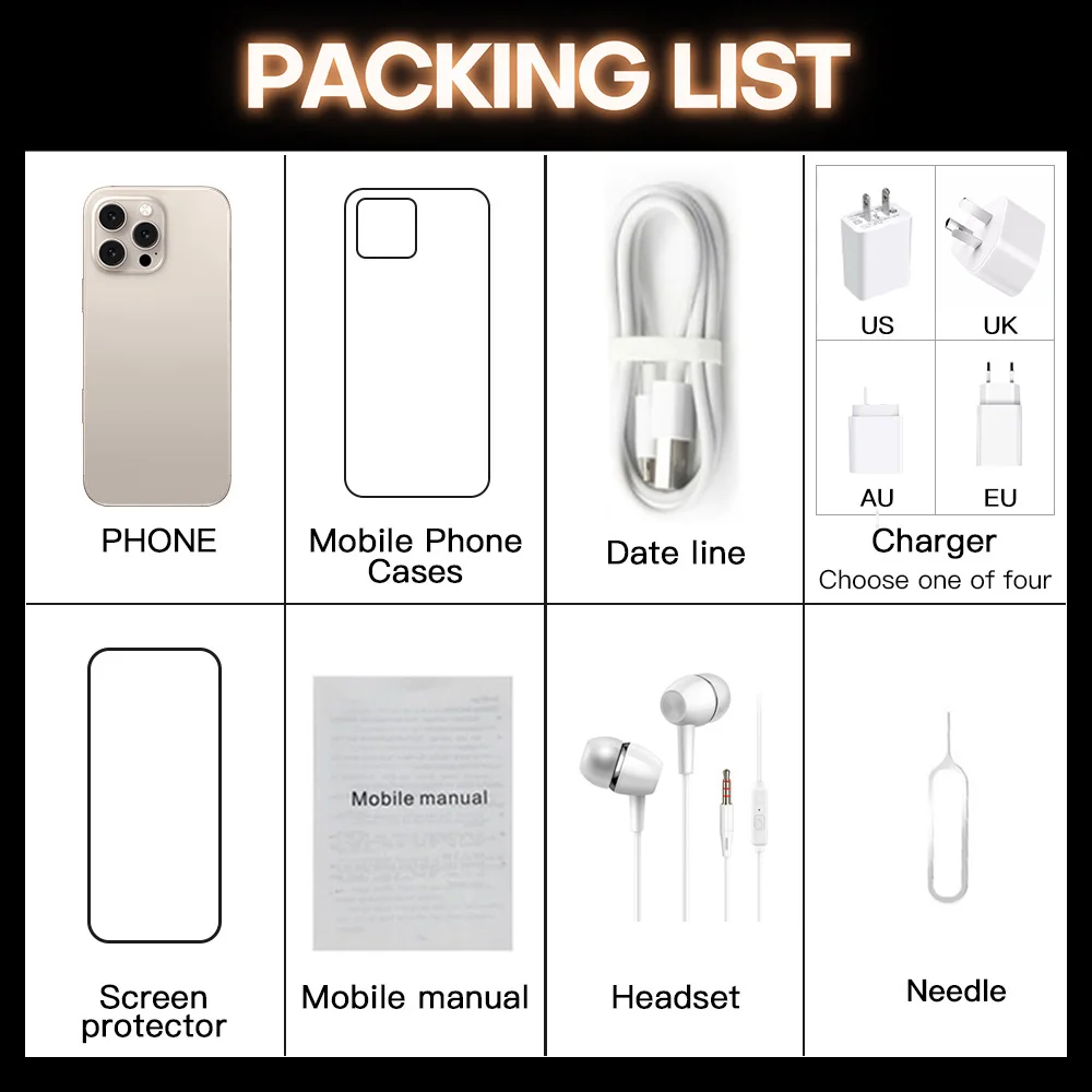1 x Charger Adapter 1 x Headphones, 1 x User Manual 1x phone case 1x Protection film |