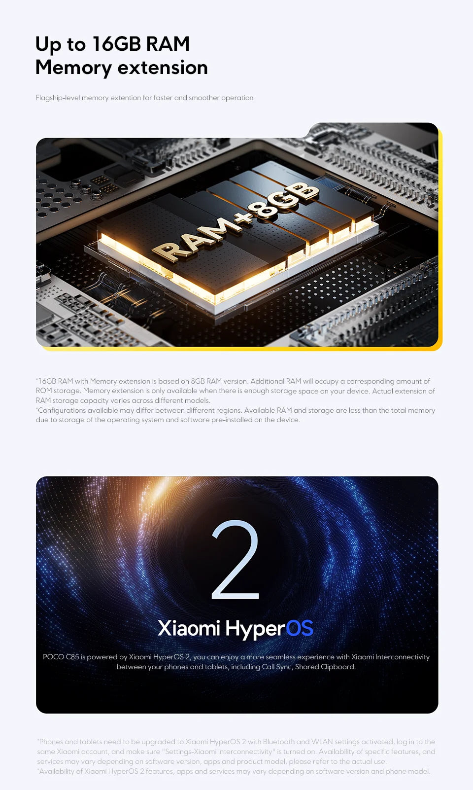 Smartphone de version mondiale POCO C85 avec chargeur européen d'origine !
