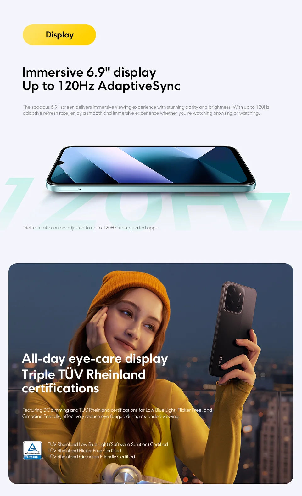 Écran ---------- 6.9" 1600x720 Dot Drop display, taux de rafraîchissement de 120Hz